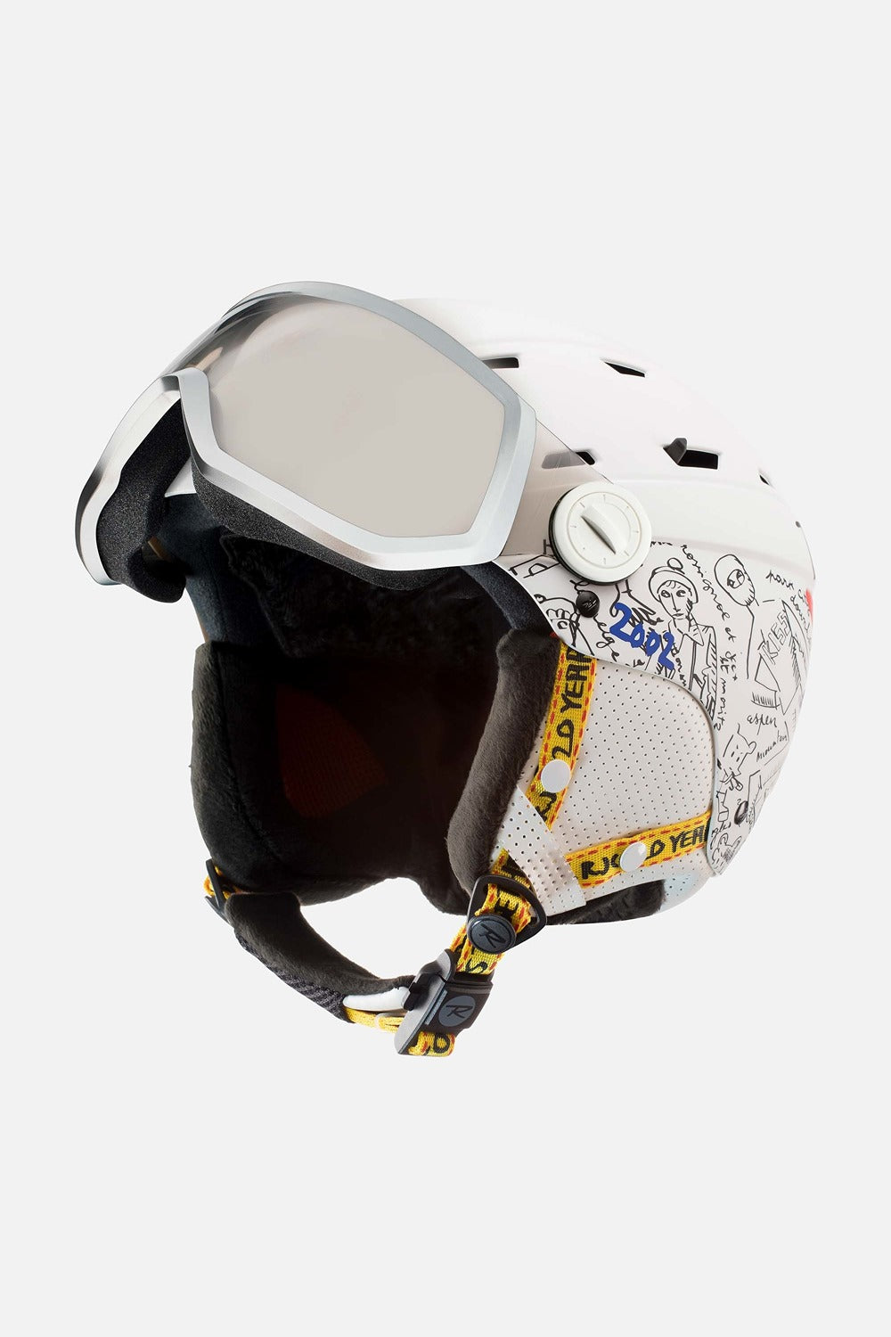 Visibility and impact coverage are top priorities for the Allspeed Visor IMPACTS JCC ski helmet. It features our IMPACTS technology with a hardshell and multi-impact foam for enhanced all-around durability with no compromise to fit, weight or style. The built-in visor features a photochromic lens that automatically adjusts to meet the current light conditions. The Dial R-Fit adjustment system lets you fine tune the fit, while adjustable vents let you regulate your temperature based on the conditions. Colorful graphics share the whimsical spirit of French fashion designer Jean Charles de Casterbajac. Durable Protection IMPACTS technology features expanded polypropylene to increase durability over the course of regular day-to-day use and help the helmet retain protective shock absorption properties longer Full Coverage, Always the Right Tint The Photochromic Visor integrates full-coverage eye protection into a streamlined helmet visor design that automatically adjusts to the light for all-conditions versatility and convenience On-the-Fly Temperature Control Adjustable active ventilation allows for on-the-fly temperature control and increased comfort Comfort and Better Hearing Earpads 2.0 feature padded comfort and warmth with holes for better hearing Adjustable Fit The Dial R-Fit system allows for an adjustable fit and is designed to maximize helmet comfort, support and protection Glove-Friendly Buckle FIDLOCK® ultra-fast magnetic closure system for easy fastening and unfastening of your helmet buckle, even while wearing gloves