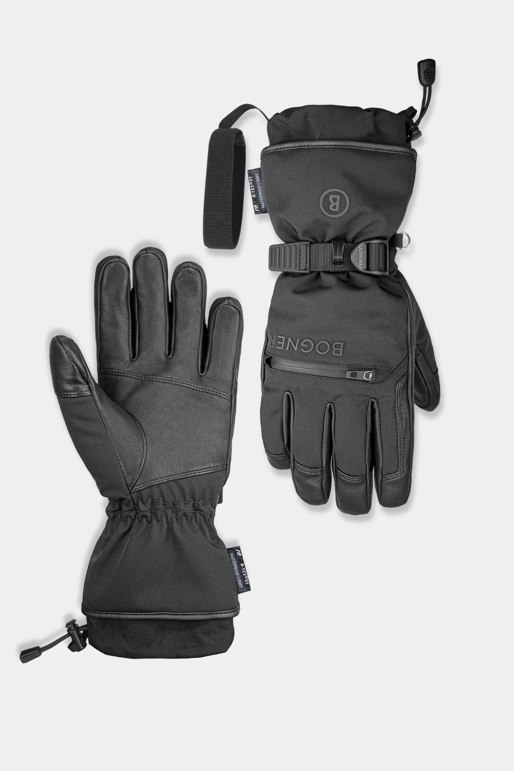 The Bogner Adriano R-TEX® XT Gloves are designed for ultimate warmth and protection. Constructed with durable Amazon Flex fabric and luxurious Sheepskin Deluxe DD palms, these gloves offer excellent grip and flexibility. The R-TEX® XT membrane ensures waterproof performance, while PrimaLoft® Gold insulation keeps your hands comfortably warm. Features like a powder cuff, heating pocket, comfort stormleash, wristband, and stopper system provide a secure fit and added weather resistance—perfect for demanding winter conditions.