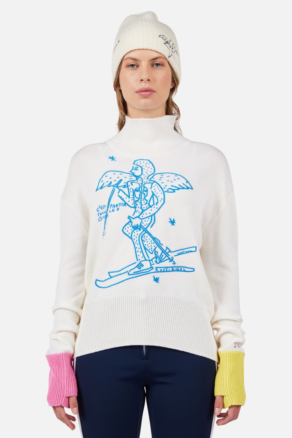 French fashion legend Jean-Charles de Castelbajac has been drawing angels on city walls for decades. Now, the iconic designs are taking flight in the mountains with the women's Rossignol JCC Lina Sweater. Made in ultra-soft merino wool with ribbed details and a high neck, it will keep you extra cozy and warm.