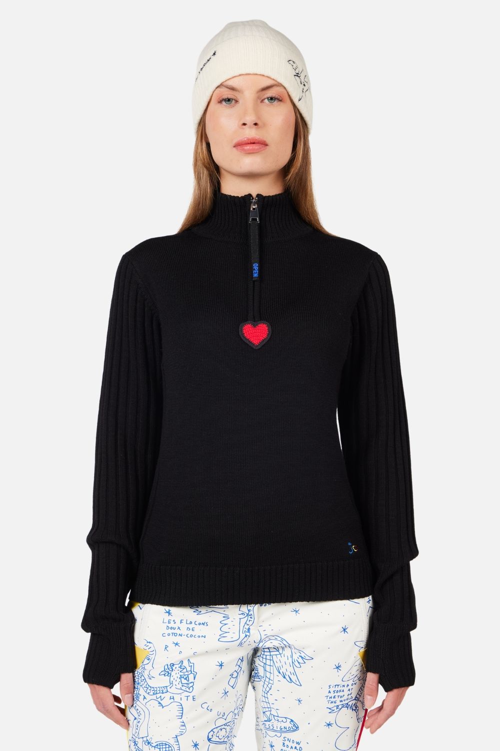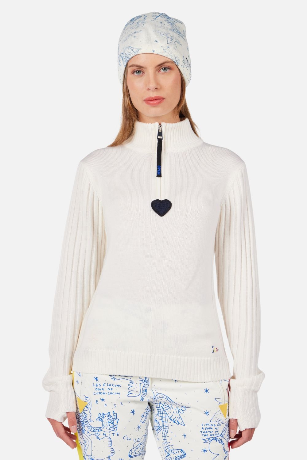 Lift to lodge, the women's Rossignol JCC Merib Half-Zip Top keeps you warm in classic Jean-Charles de Castelbajac style. It's crafted in merino wool, with a high neck you can wear open or zipped to suit your needs. A heart patch adds that French fashion flair.
