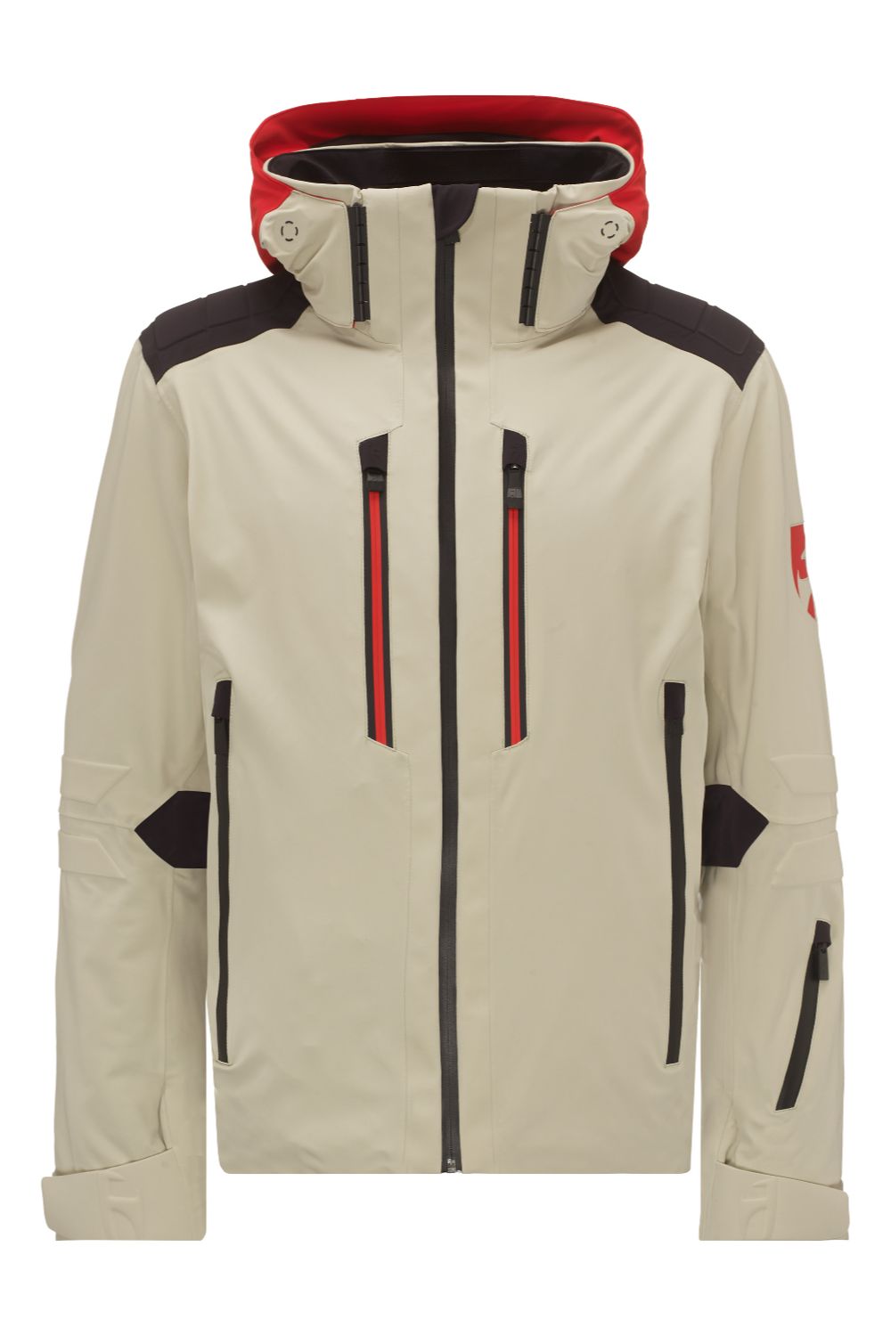 Pure action! The EVAN men’s ski jacket with our luxury Premium 4-way Stretch fabric is one of our most active jackets in slim fit. Optimized ventilation zips give the avid skier a perfect control of his body climate. 3D details on the shoulders and elbows support this incredible technical Toni Sailer look!